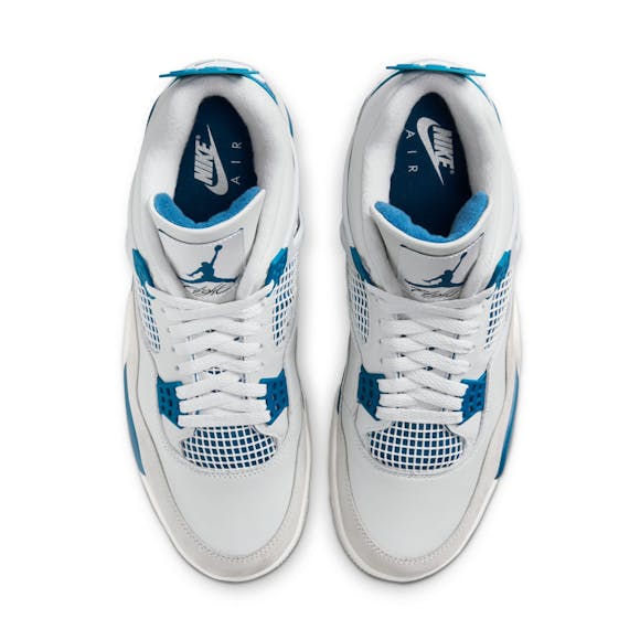 Step into a classic. The beloved AJ4 returns in premium Off-White leather, Neutral Grey nubuck and striking hits of Industrial Blue—creating an overall clean aesthetic. Staying true to form, we reengineered this icon back to its original '89 specs with all the signature trimmings: a bold Jumpman logo, netting accents, the famous "wings" and Nike Air branding on the heel to finish off the heritage appeal.