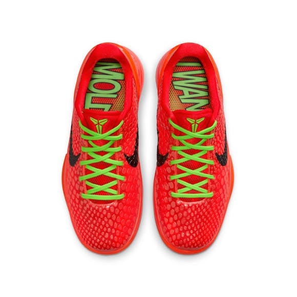 We took a favourite Kobe colourway first released on Christmas Day 2010 and reversed it for the latest Kobe 6 drop. A scaly reptile skin-like upper draws inspiration from Kobe's Black Mamba nickname while Bright Crimson and lime green colouring lets your style pop on the court. Lower, sleeker and faster-looking than before, it's fitted with responsive foam and scaled-down traction for improved court feel.