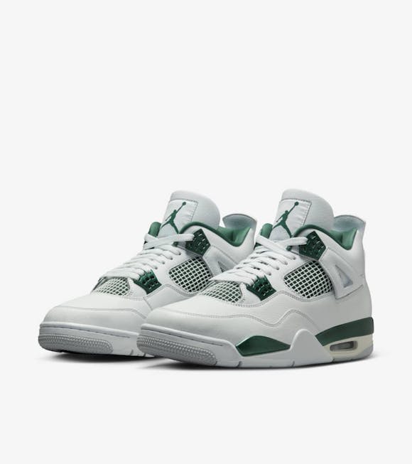 Ponte unos clásicos. Los deseados AJ4 regresan con un poco de brillo adicional. Su parte superior de cuero impecable en tono blanco cuenta con detalles en verde oxidado y vienen con un tono lustre metálico en los ojales, la entresuela y el logotipo. Como es de esperarse, la amortiguación Nike Air en el talón y en el antepié brinda suavidad en cada pisada. Los elementos del diseño original como los ojales flotantes y los paneles similares a la malla hacen que se sientan tan nuevos como se sintieron en 1989.
