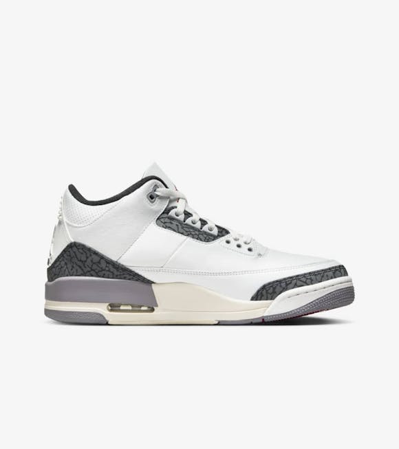 Impecables y supremos, los AJ3 regresan en una combinación de colores nueva, pero que ya conoces. La parte superior de cuero blanco cumbre viene con revestimientos con estampado tipo piel de elefante y detalles en gris de cemento y rojo pasión. Con un cuello acolchado y amortiguación Nike Air, los terceros tenis de MJ te llevarán a donde vayas con estilo y comodidad. Es posible que nunca vueles como MJ, pero cuando lo intentes, al menos parecerá que vuelas.