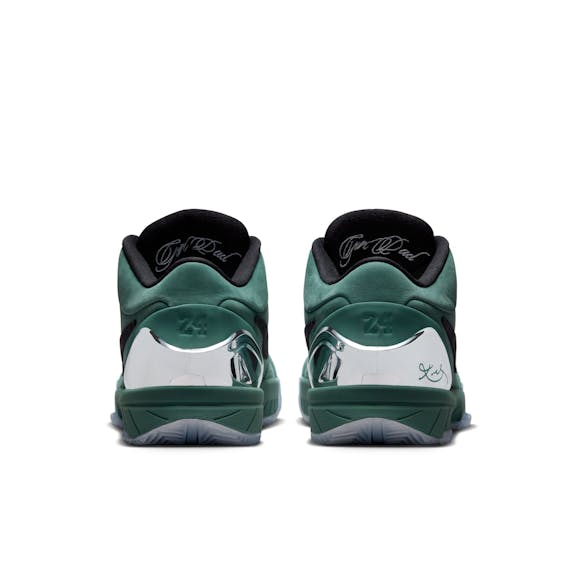 L'empeigne verte s'inspire du bonnet de Kobe Bryant. Un coloris sublimé par le mélange de matières premium et le clip chromé au talon. Le logo argenté et la semelle extérieure transparente illuminent le modèle.