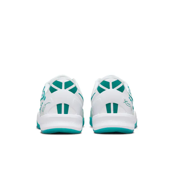 Kobe est le seul joueur de l'histoire de la NBA dont l'équipe a retiré deux de ses maillots. Il a atteint ce niveau avec une concentration indéfectible sur le jeu, et la Kobe 8 Protro « Aqua » est inspirée de sa régularité tout au long de la saison. Les numéros 8, 24 et 2 (les maillots portés par Kobe et sa fille Gianna) sont répétés en grand et en vert sur l'empeigne en mesh blanc.